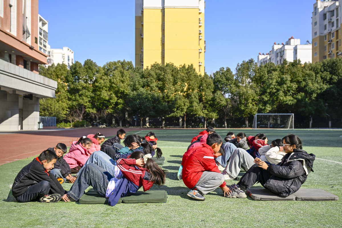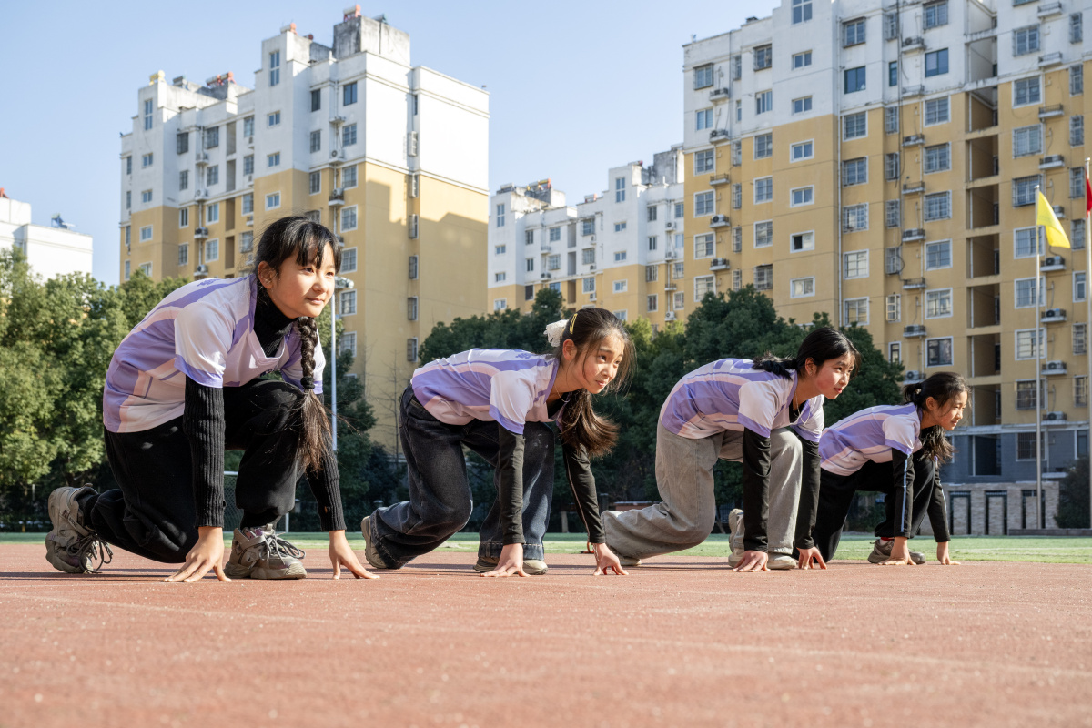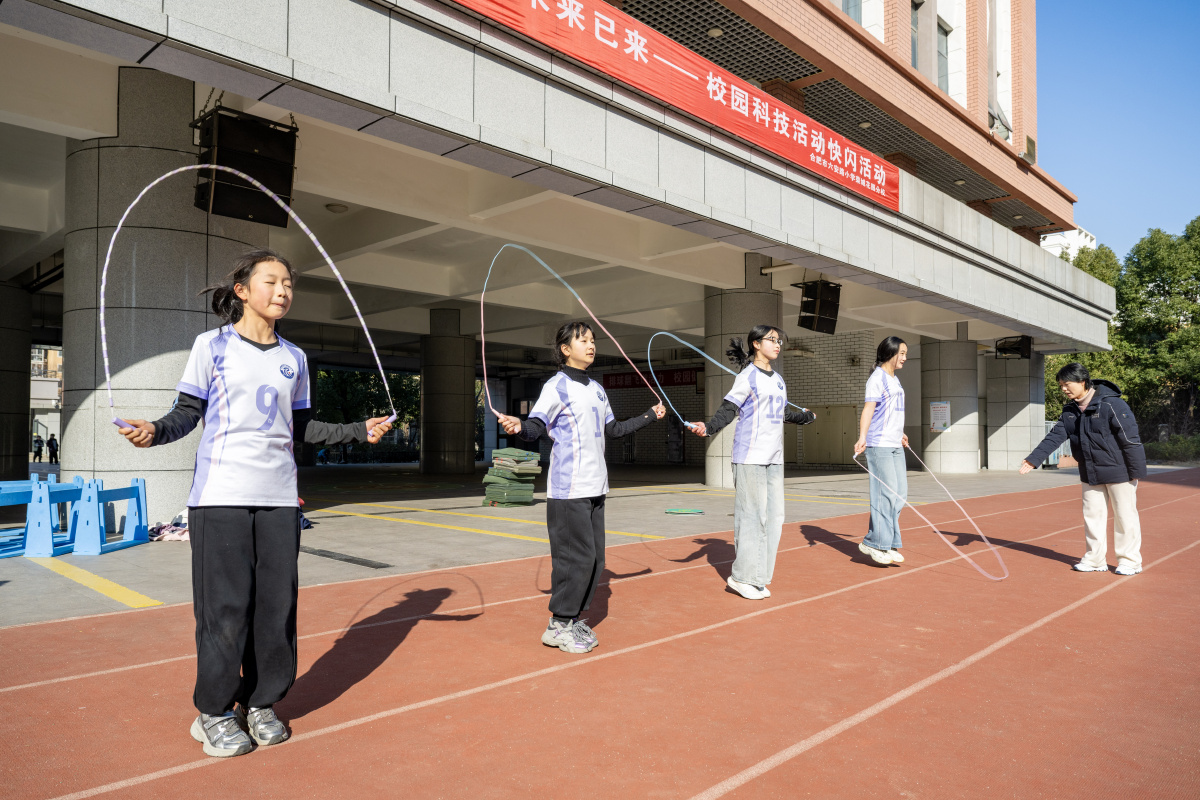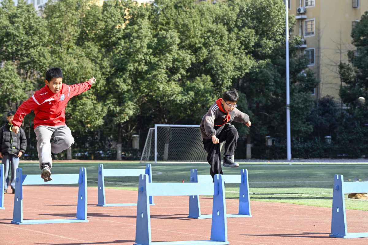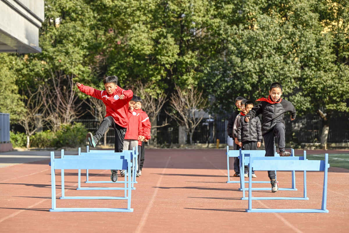 2026年1月22日,在安徽省合肥市庐阳区林店街道六安路小学荣城花园分校,小学生正在体育老师的指导下进行体能训练。近年来,该校根据不同年龄段小学生体质体能发展情况,开展如跑、跳、跨、投、撑、卧等运动类型,进行相应的体能锻炼与提高,增强学生体能训练的科学性和专业性。