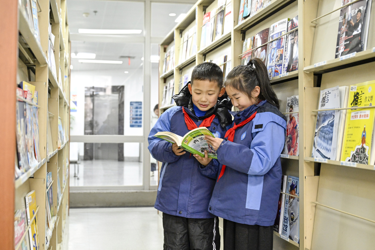 2026年1月27日,在安徽省合肥市图书馆,来自合肥市亳州路小学的小学生正在认真阅读书籍,享受读书带来的乐趣。当日,该校组织开展“书香暖童心,馆内觅新知”主题活动,学生们在老师的引导下,挑选自己喜欢的一本好书,旨在鼓励和引导学生们从小养成“好读书、读好书”的良好习惯,在经典书香中汲取营养,增长知识、快乐成长。