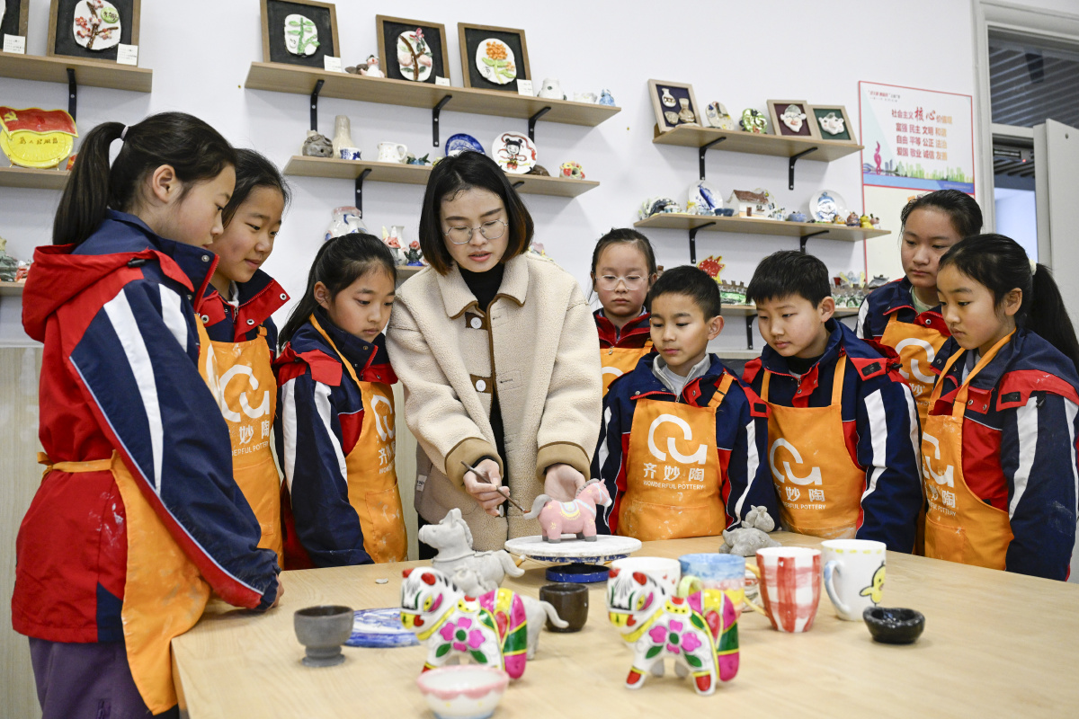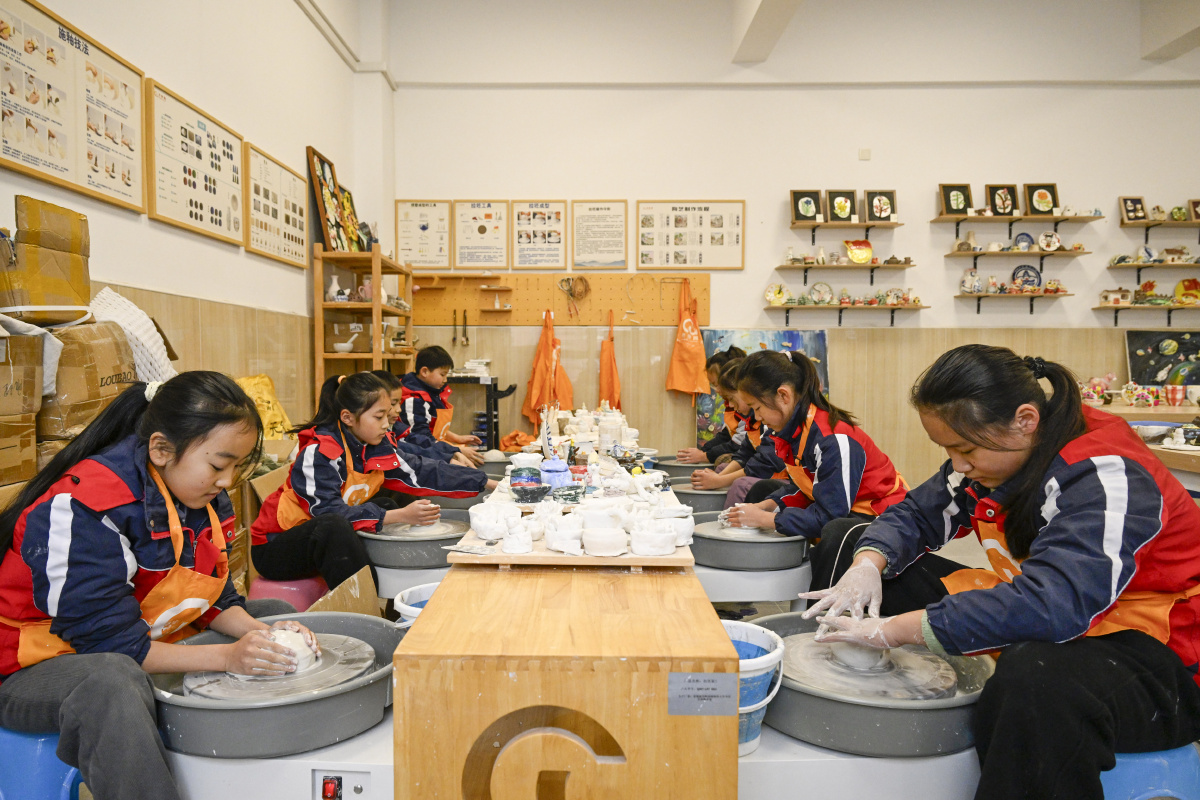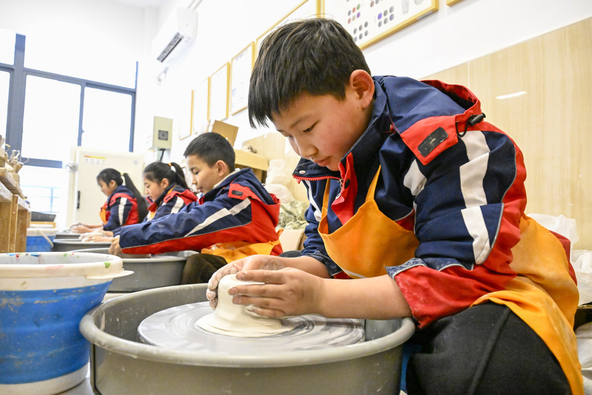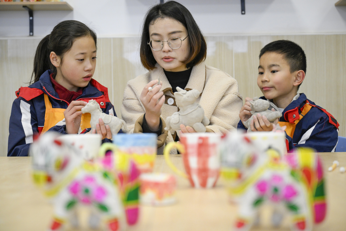 2026年1月28日,在安徽省合肥市逍遥津小学金都华庭校区,小学生正在制作泥塑作品。近年来,该校开设非遗泥塑特色课堂,聘请非遗传承人为学生授课,培养学生的实践动手能力,让学生感受传统文化的魅力。