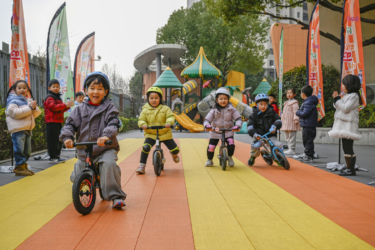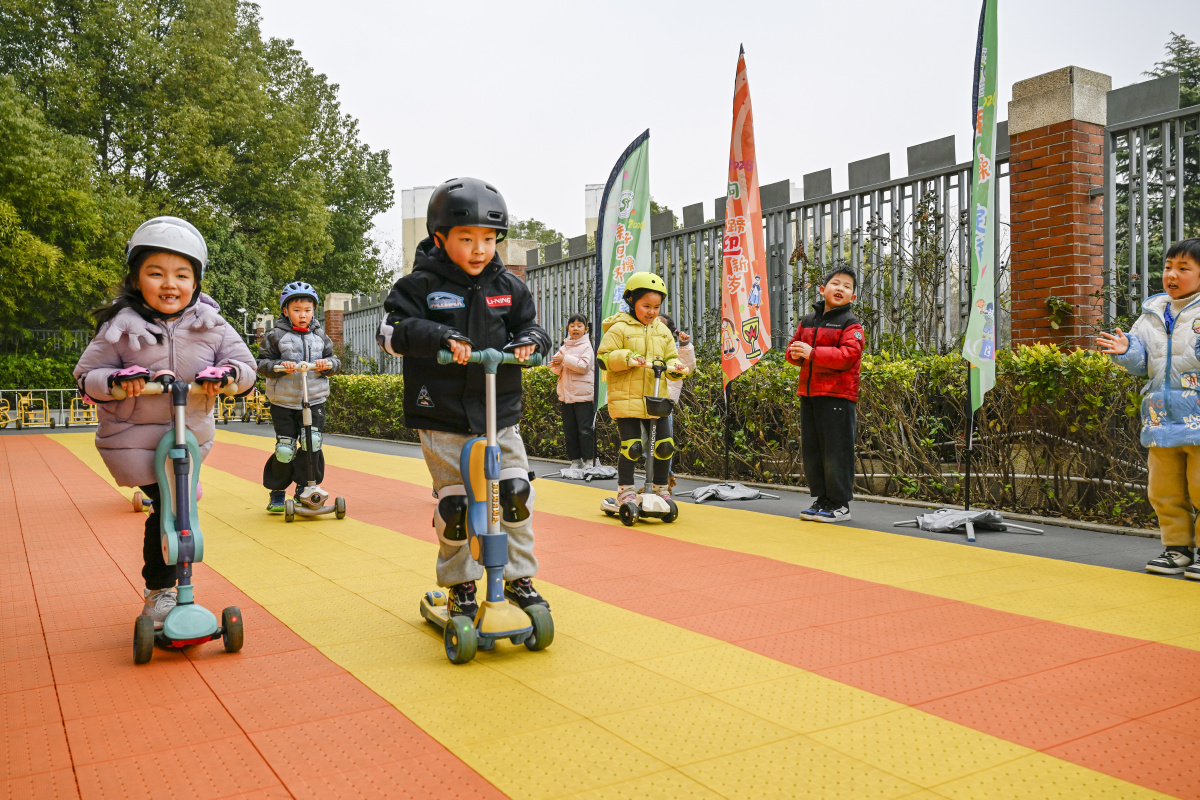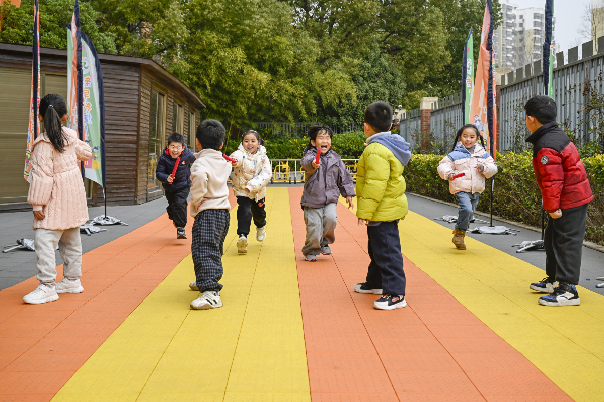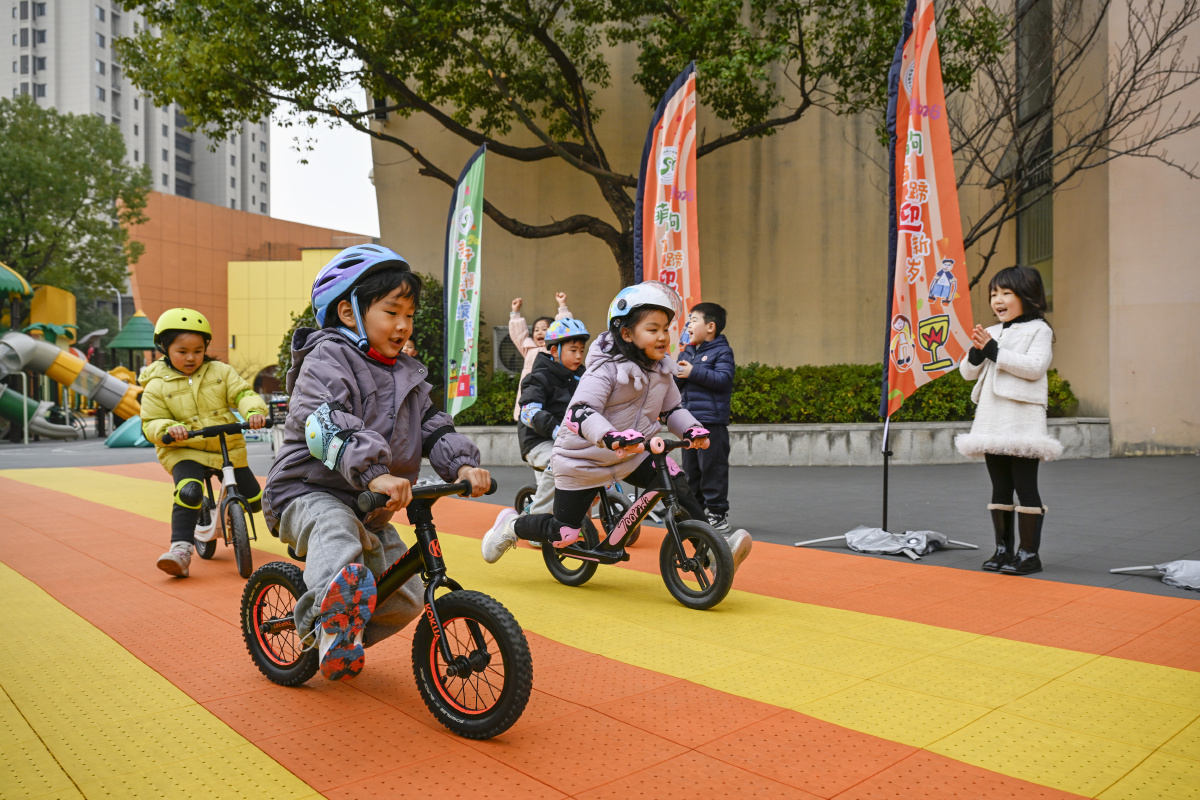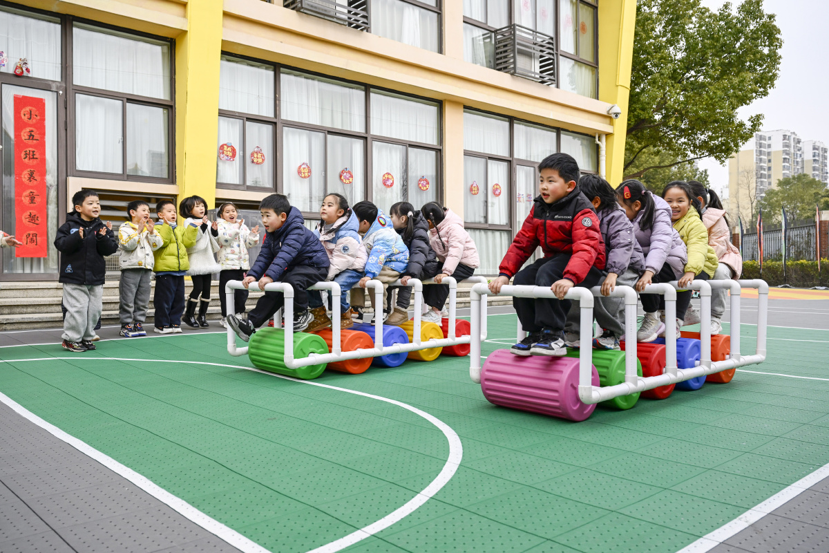 2026年1月28日,在安徽省合肥市宿州路幼儿园教育集团森林城分园,小朋友们正在进行户外体育运动游戏。近年来,该幼儿园大力推进幼儿户外体育运动,通过滑板车、平衡车、攀爬架、趣味接力跑等游戏化户外运动形式,提升幼儿身体协调性、平衡感与团队合作意识。