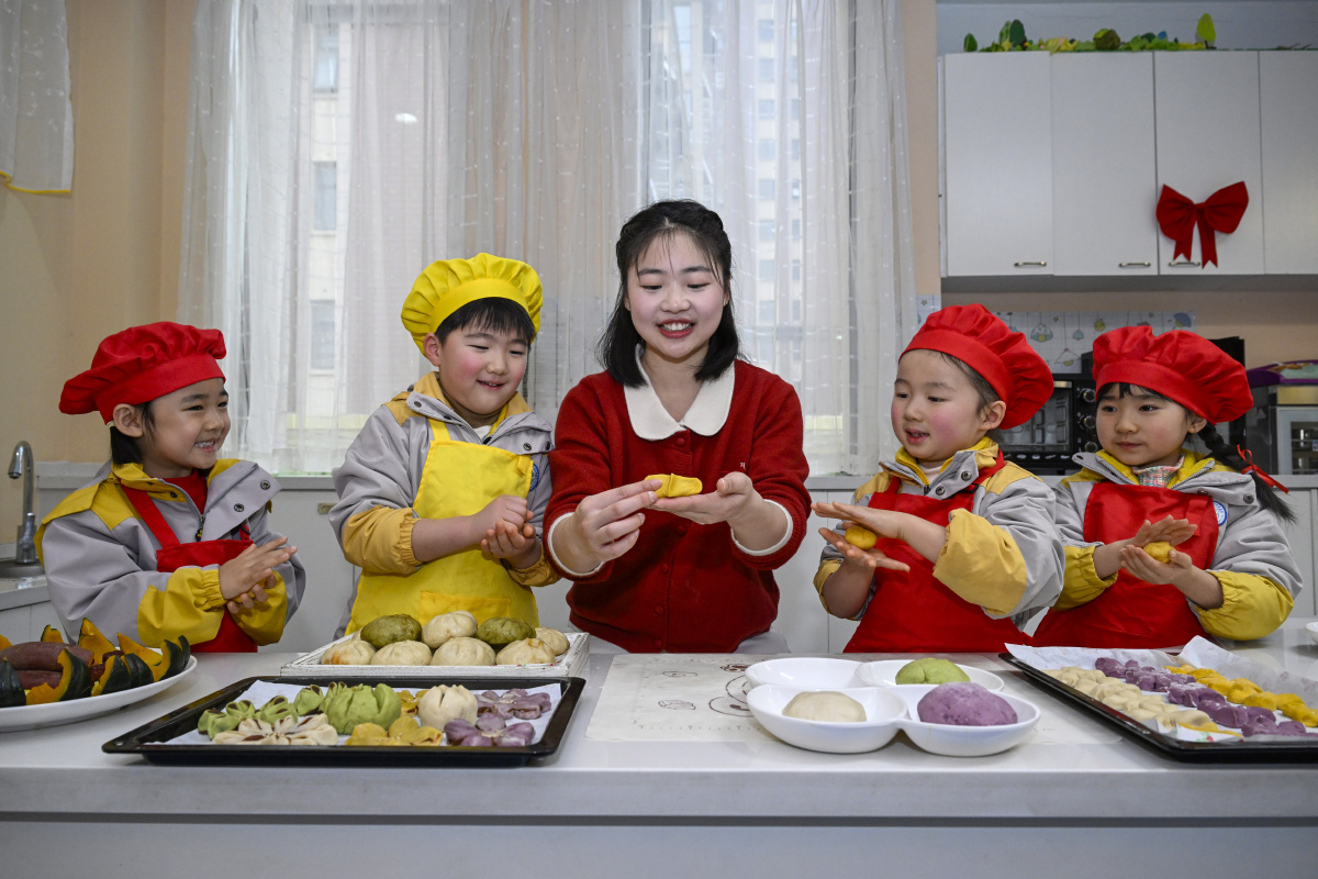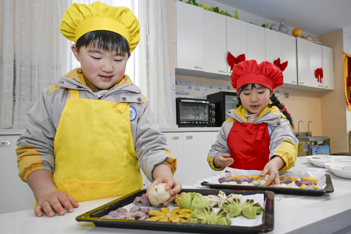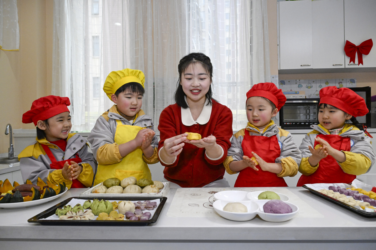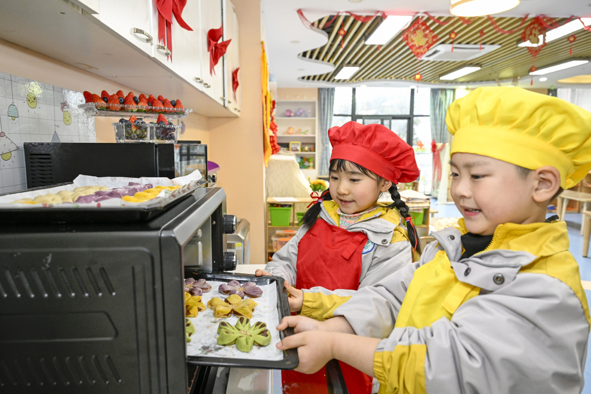 2026年1月30日,在安徽省合肥市庐阳实验幼儿园教育集团四里河畔分园,小朋友们正在学习制作百花酥。近年来,该幼儿园将烘焙、园艺、手工等引入课堂,开展“以劳育人”活动,让孩子们在学习生活技能中提高动手能力,体验劳动带来的快乐。