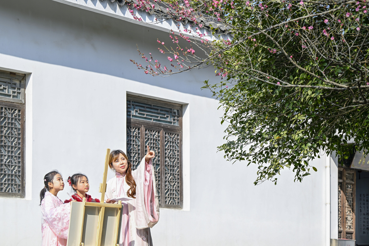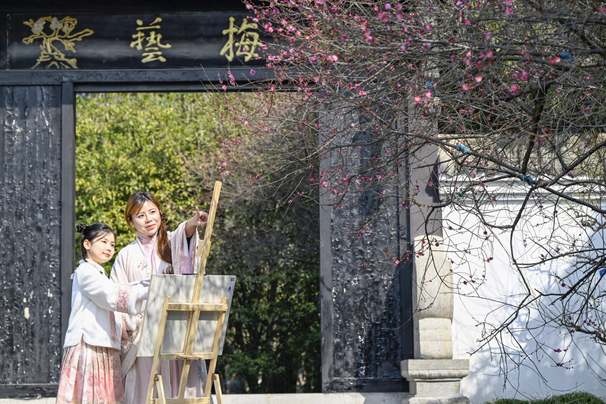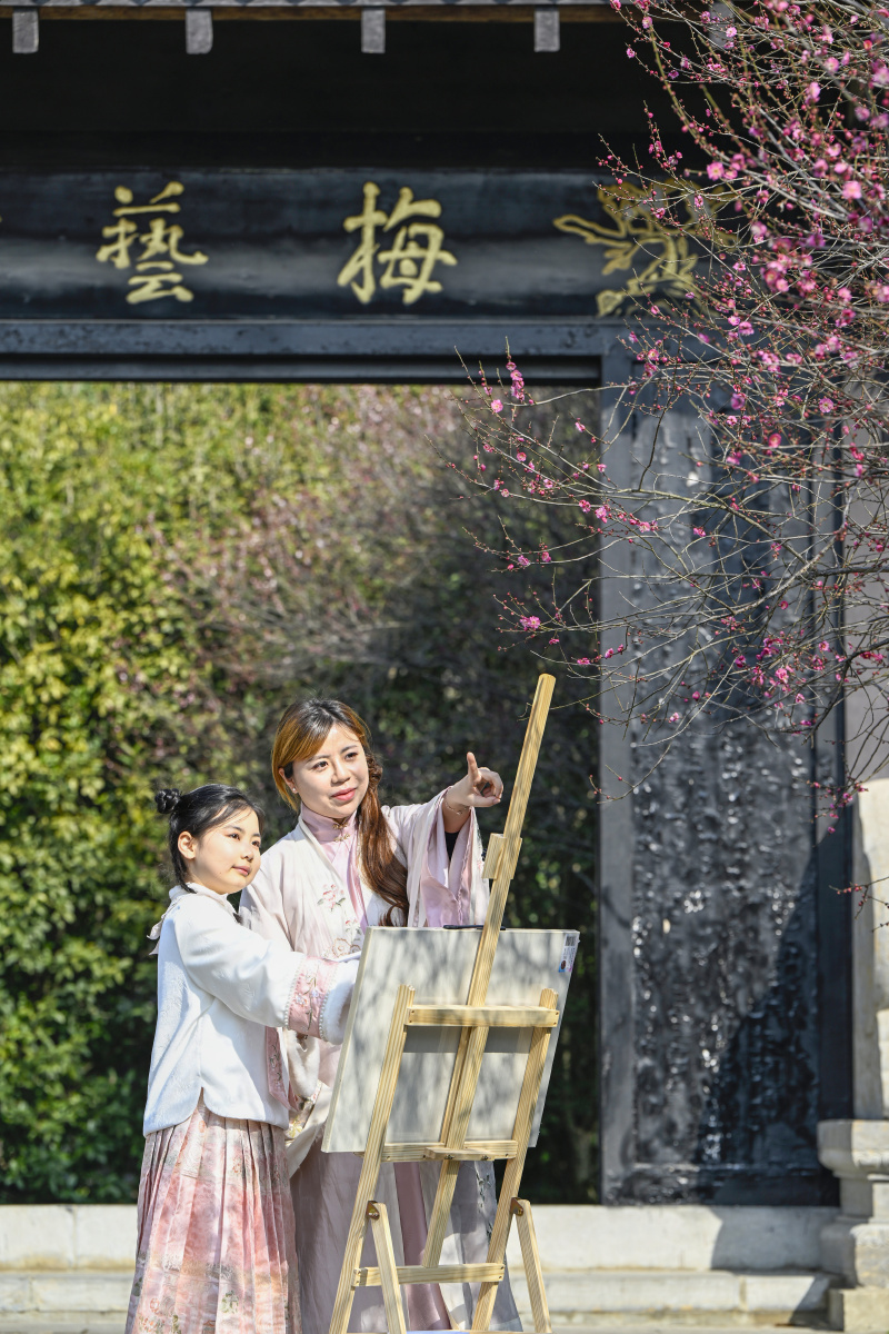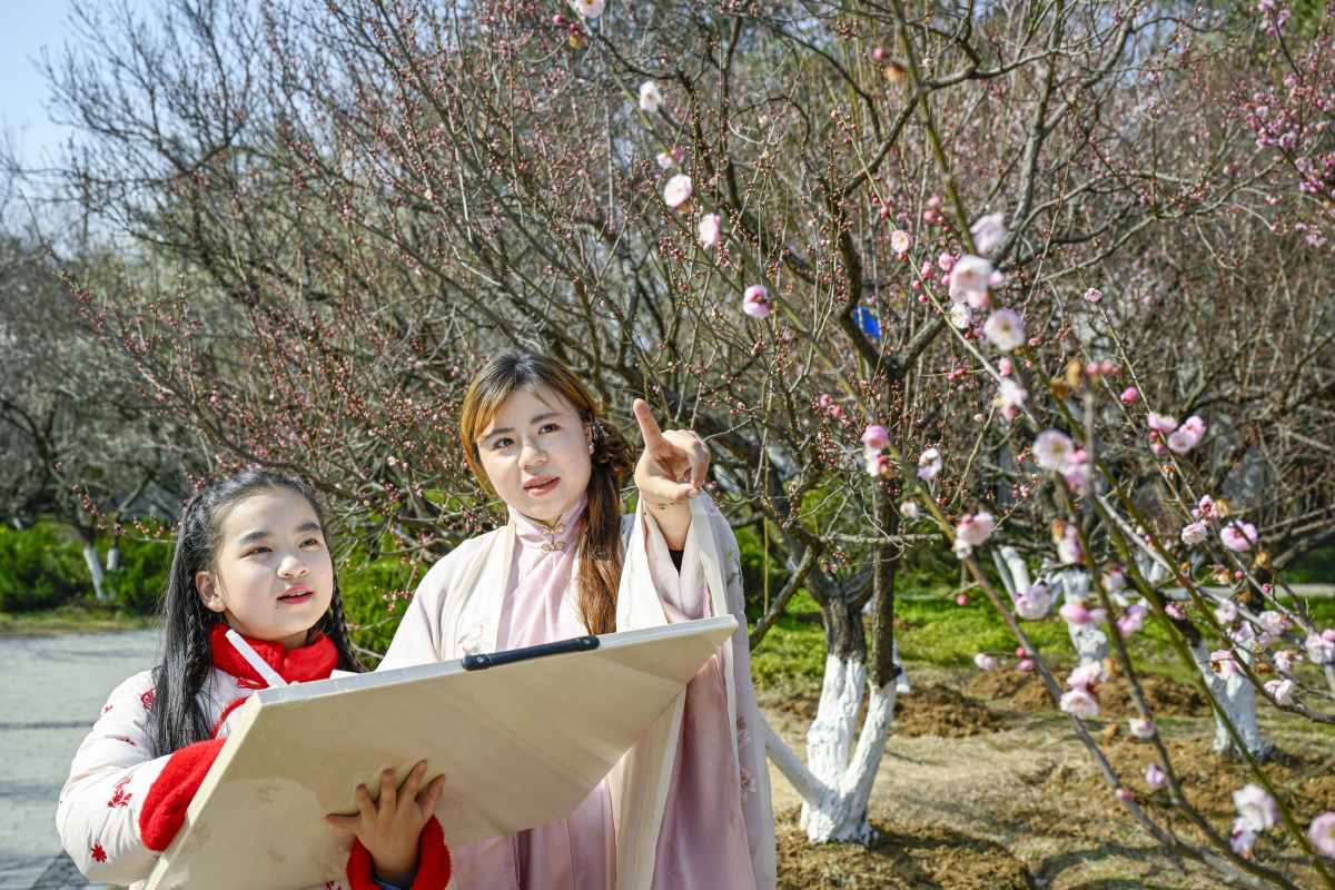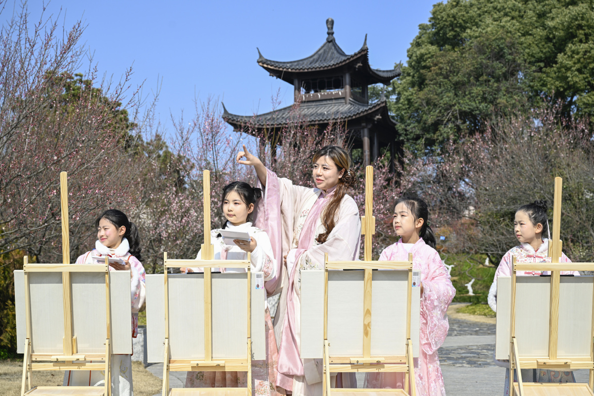 2026年2月4日,在安徽省合肥植物园,来自合肥市庐阳区四河小学的小学生正在梅花林里写生画春。当日,该校组织学生开展“拥抱春天,感受美好”户外兴趣课活动,让学生们走近自然,感受春天的气息,探索万物复苏的惊喜。