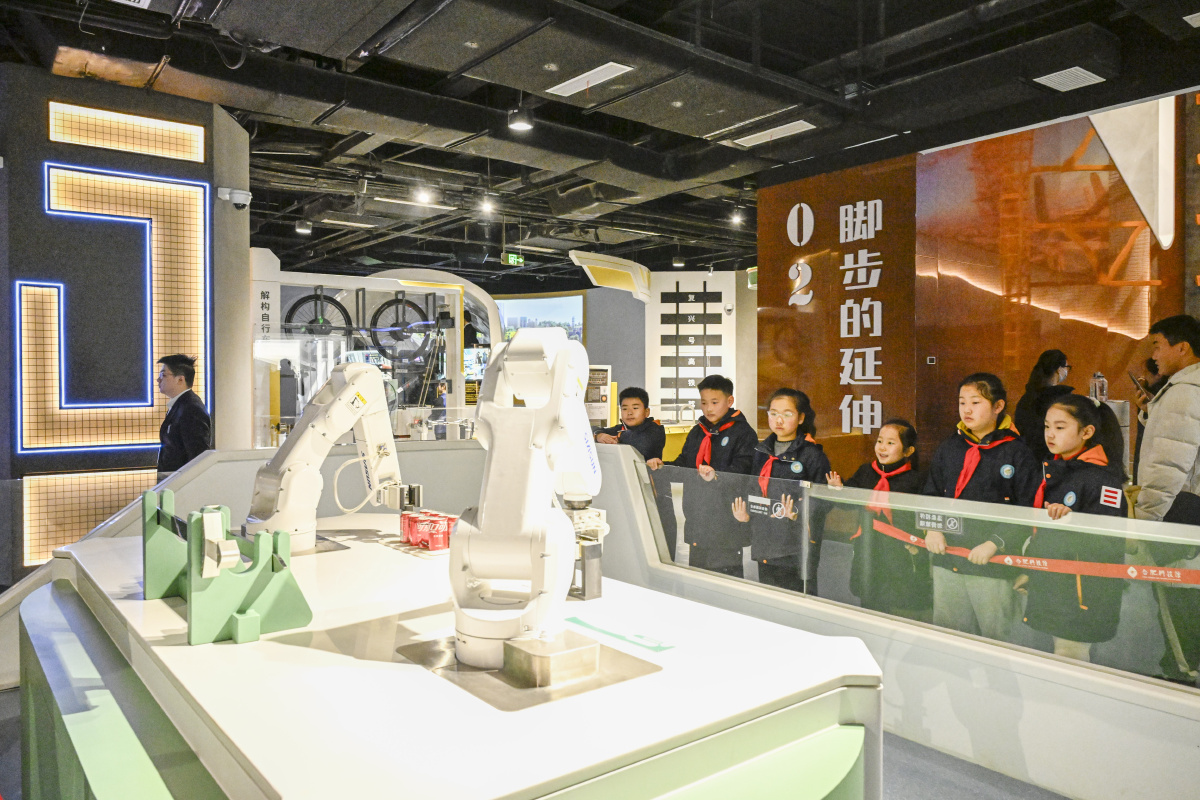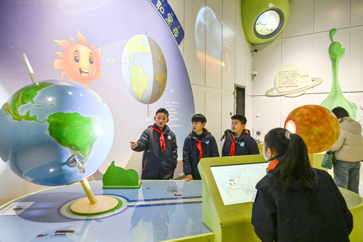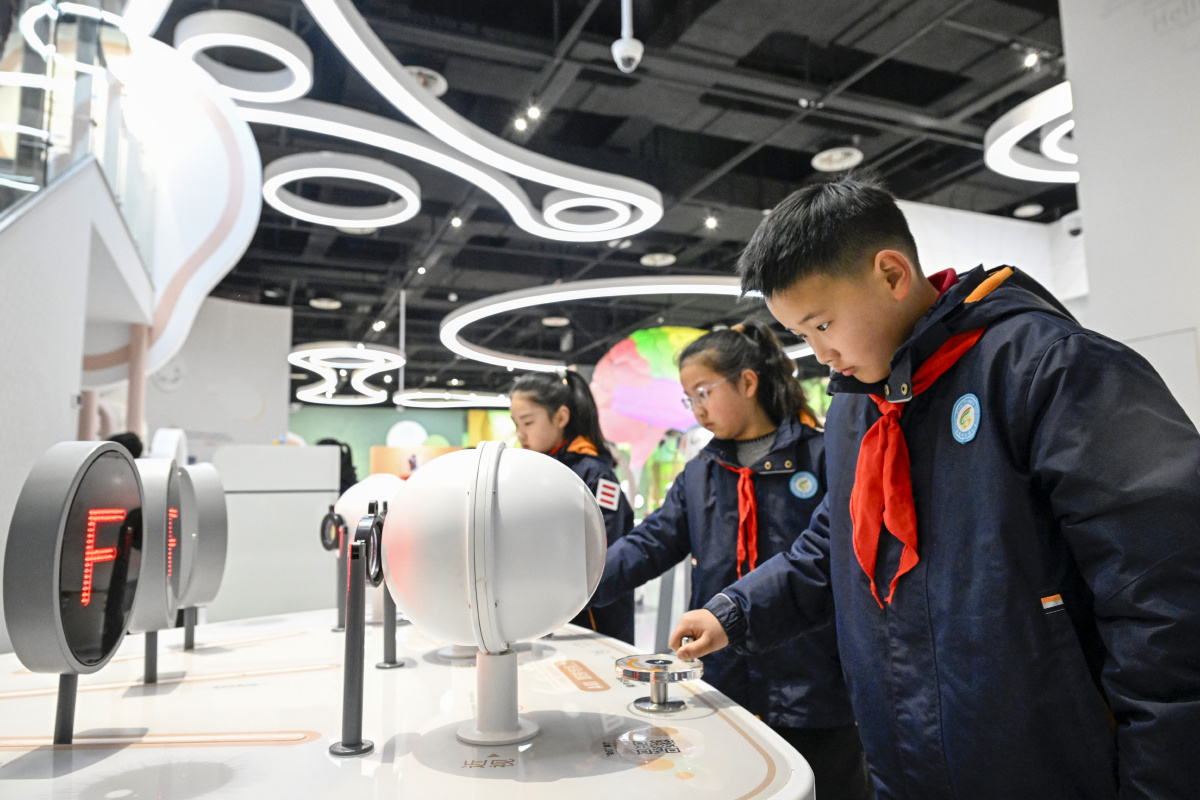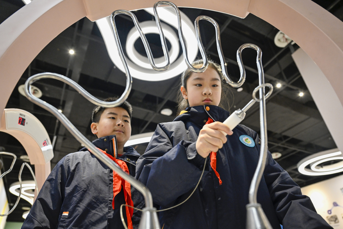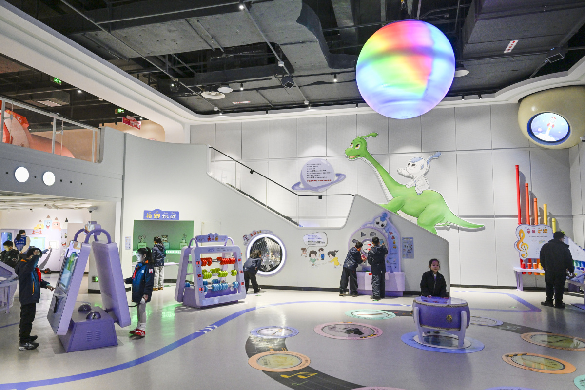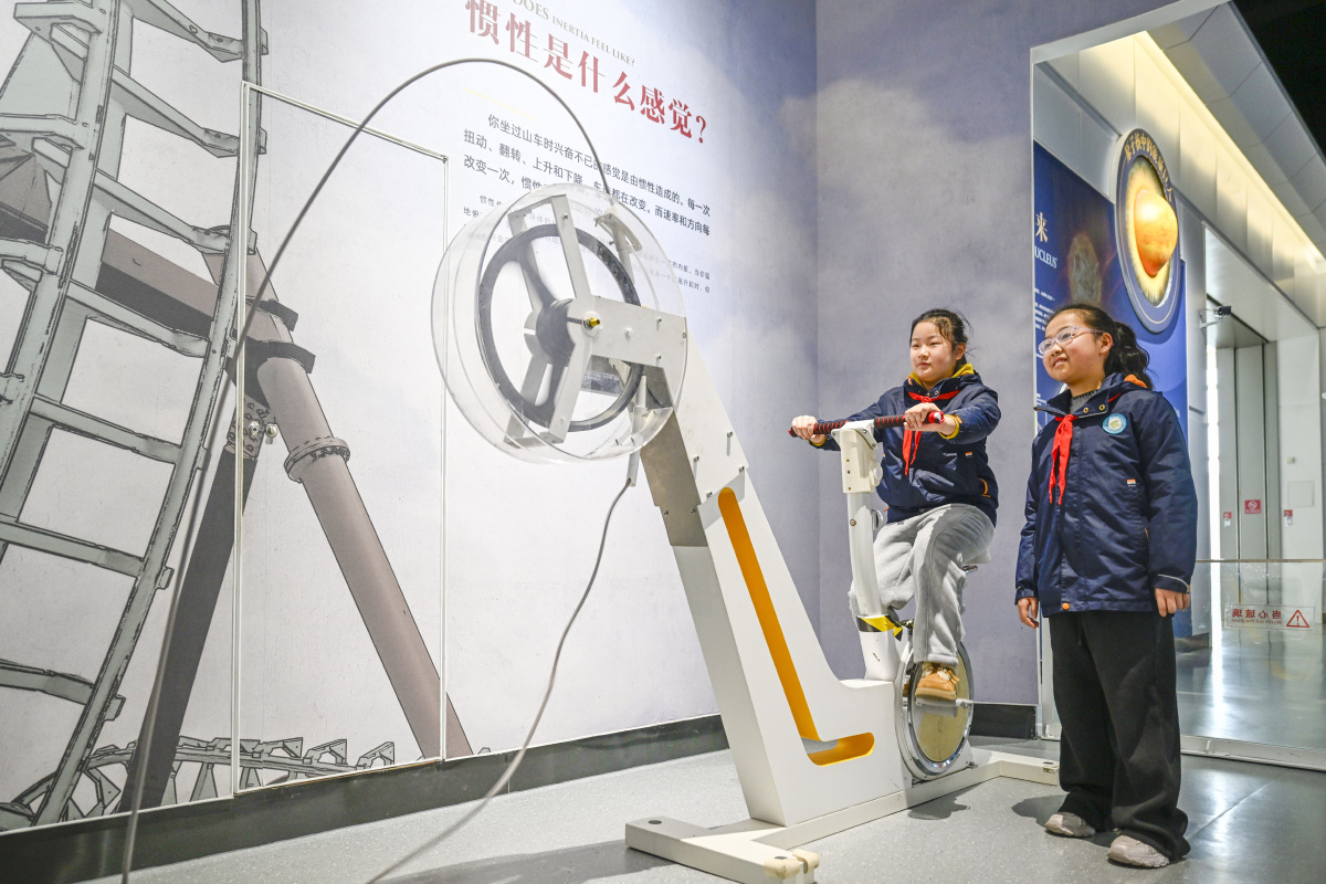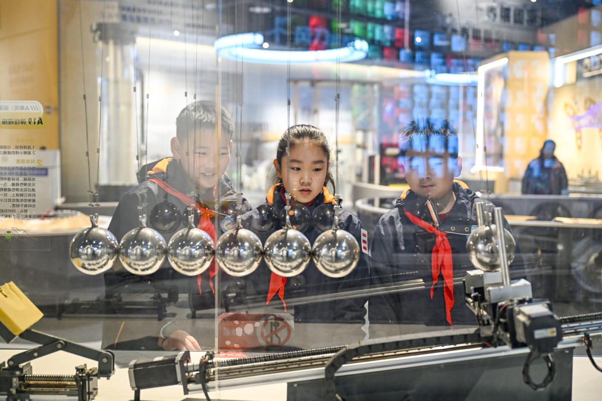2026年2月4日,在安徽省合肥市科技馆,来自庐阳区四河小学的小学生正在体验科普设备,学习科技知识。当日,该校组织学生开展“学科学、爱科学、用科学”寒假课外主题活动,学生们通过参观体验各种科普展览和趣味科普游戏,学习科普知识,感受科技魅力。