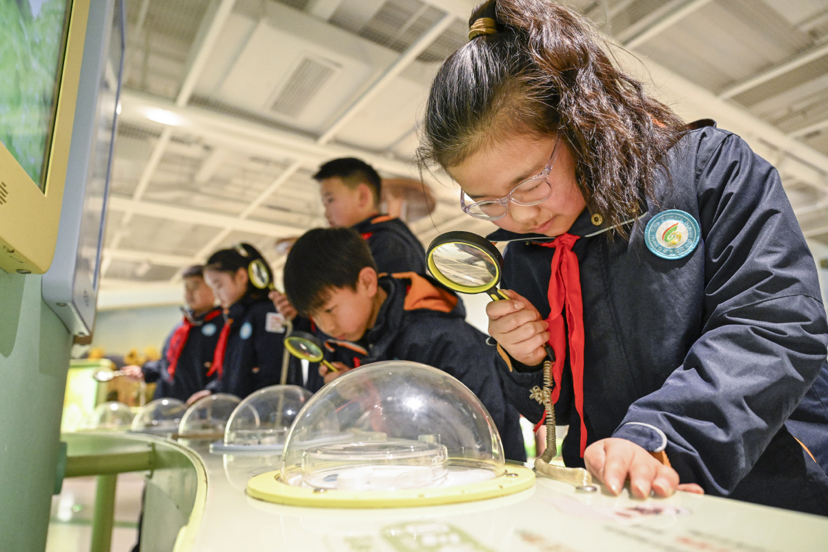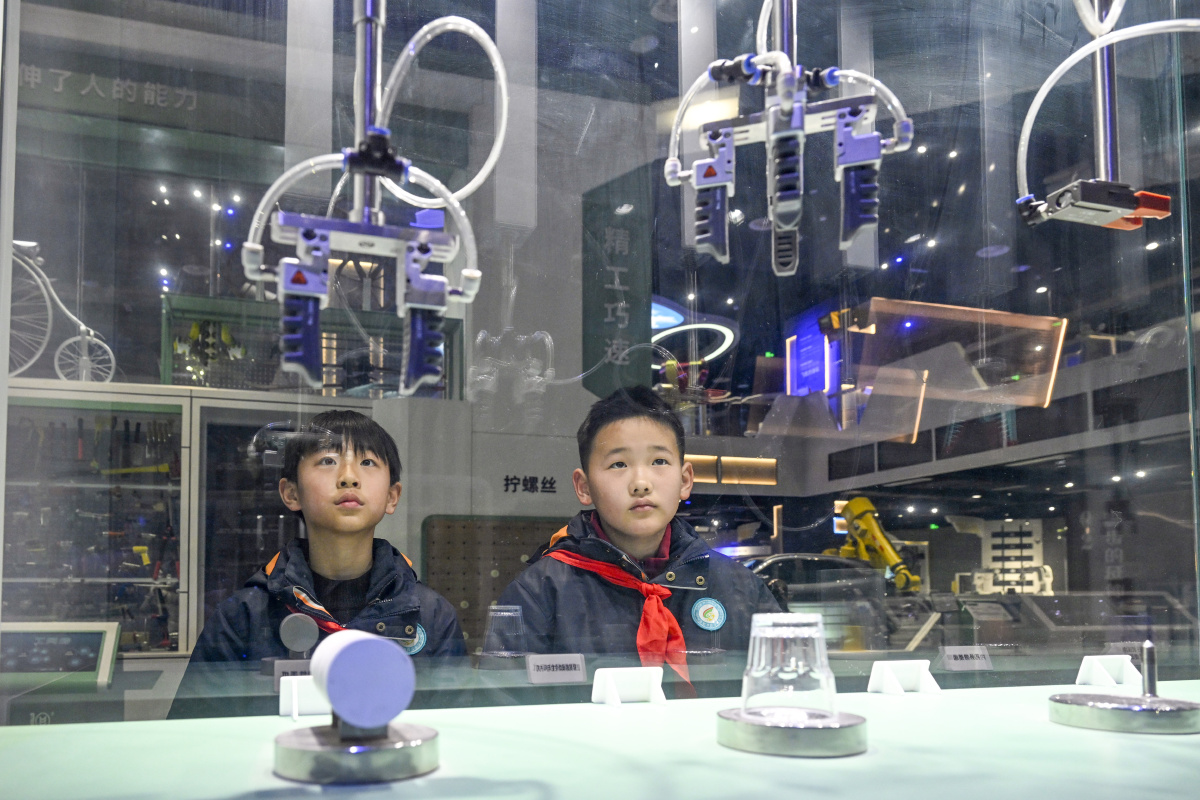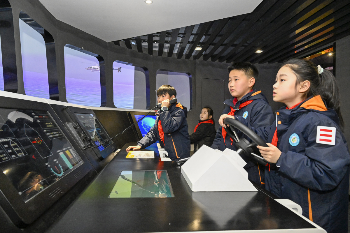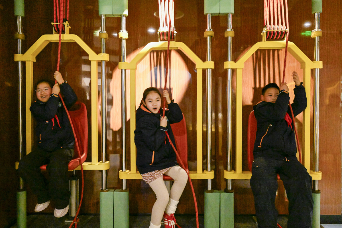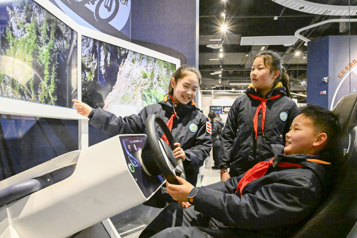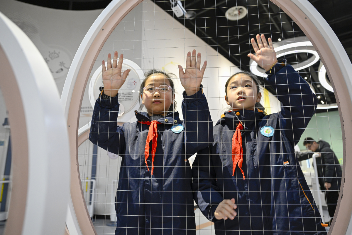 2026年2月4日,在安徽省合肥市科技馆,来自庐阳区四河小学的小学生正在体验科普设备,学习科技知识。当日,该校组织学生开展“学科学、爱科学、用科学”寒假课外主题活动,学生们通过参观体验各种科普展览和趣味科普游戏,学习科普知识,感受科技魅力。