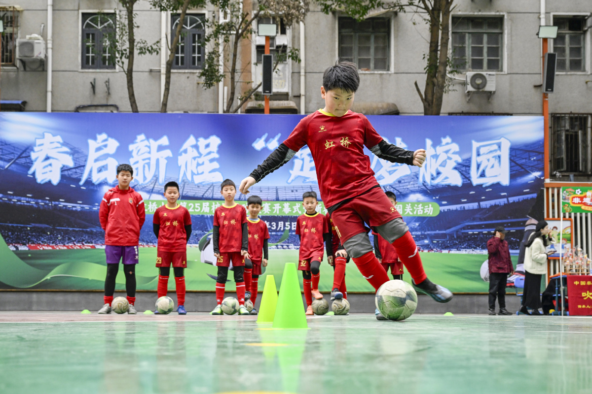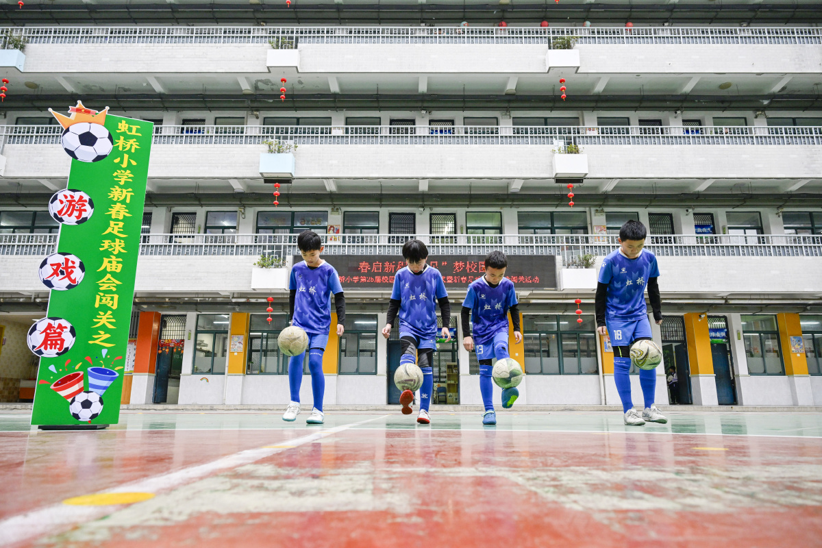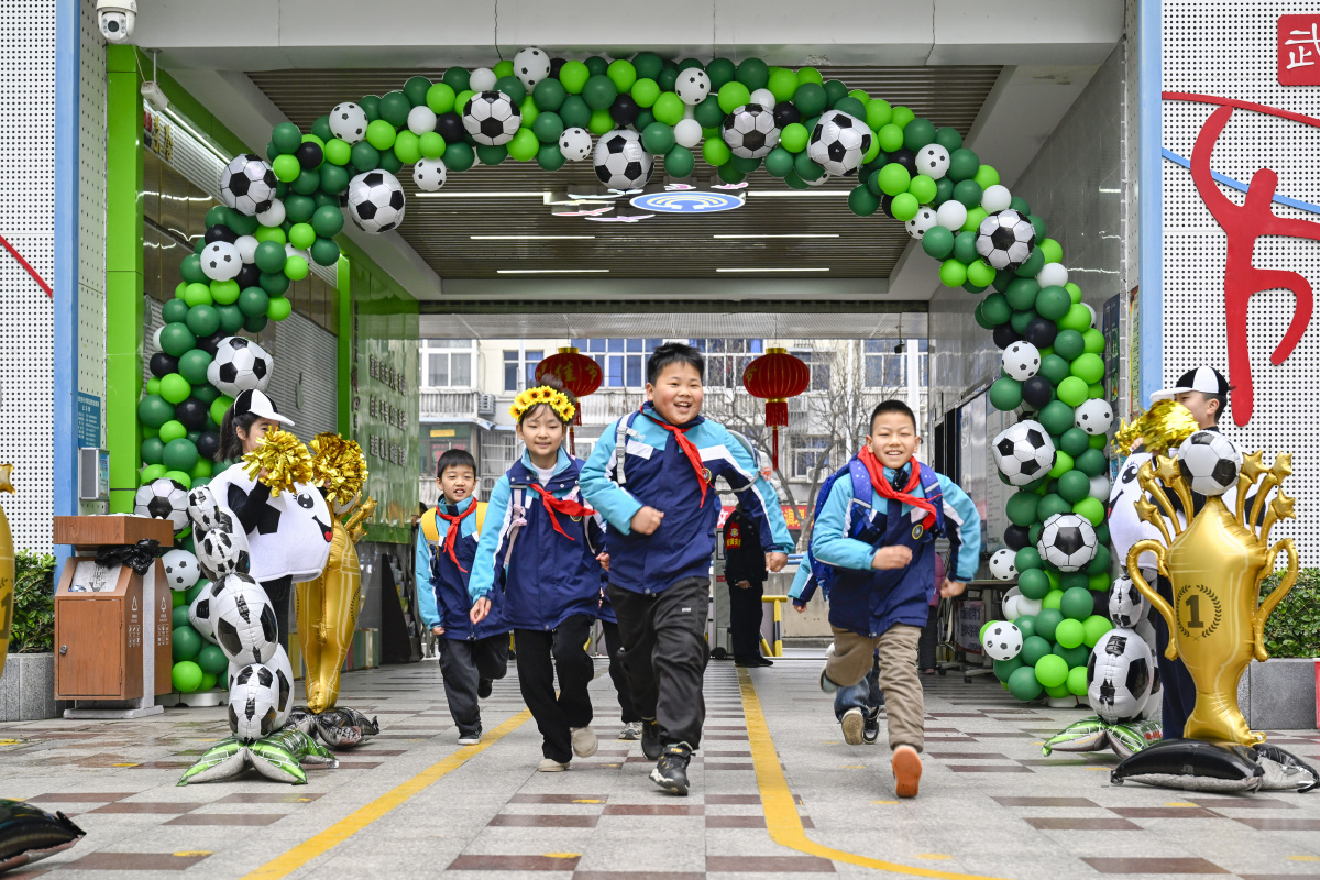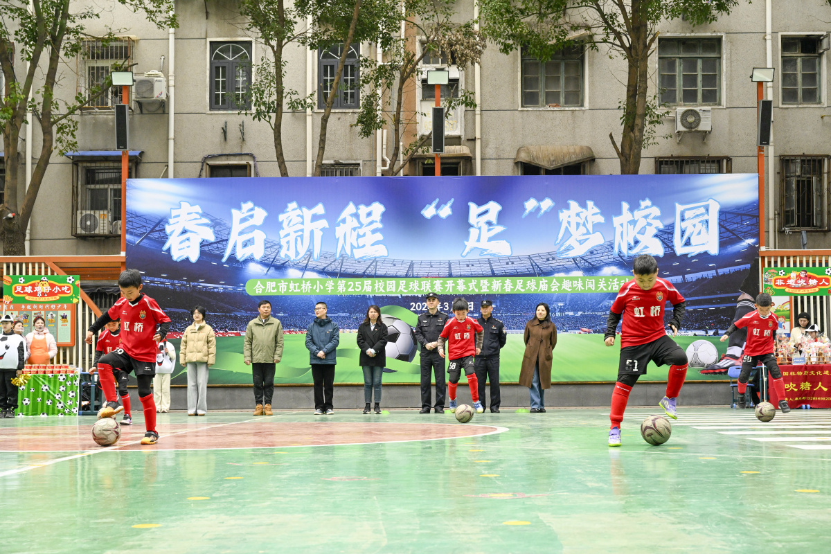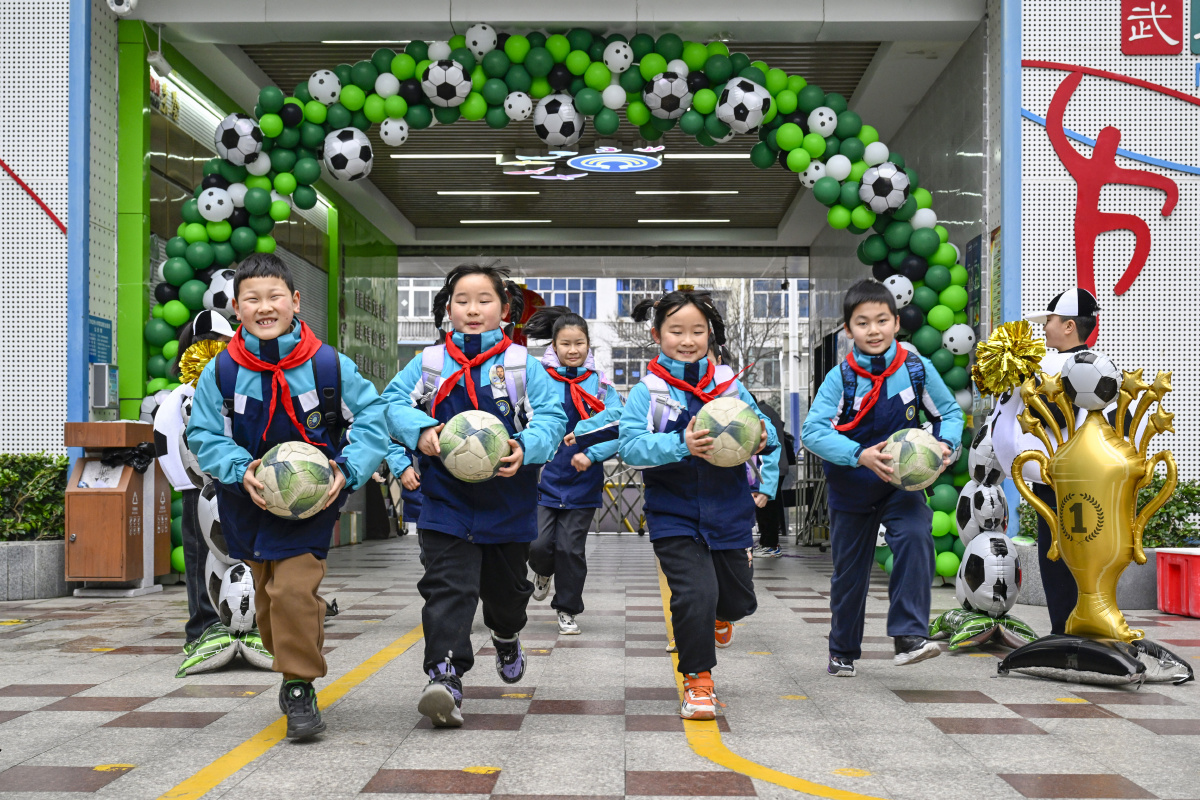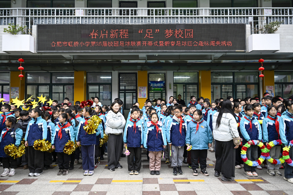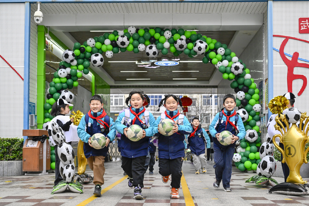 2026年3月5日,在安徽省合肥市庐阳区虹桥小学,小学生正在参加趣味足球运动游戏。当日,合肥市各中小学迎来春季开学季,该校通过开展快乐颠球、桌面足球赛、足尖绕桩、一球击倒、球趣涂鸦等丰富多彩的趣味足球运动游戏,激发学生们对体育运动的热情,树立“健康第一”的理念,感受运动的快乐,书写新学期的崭新篇章。