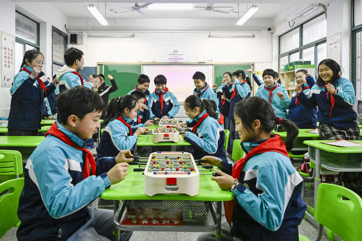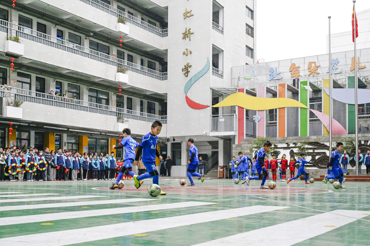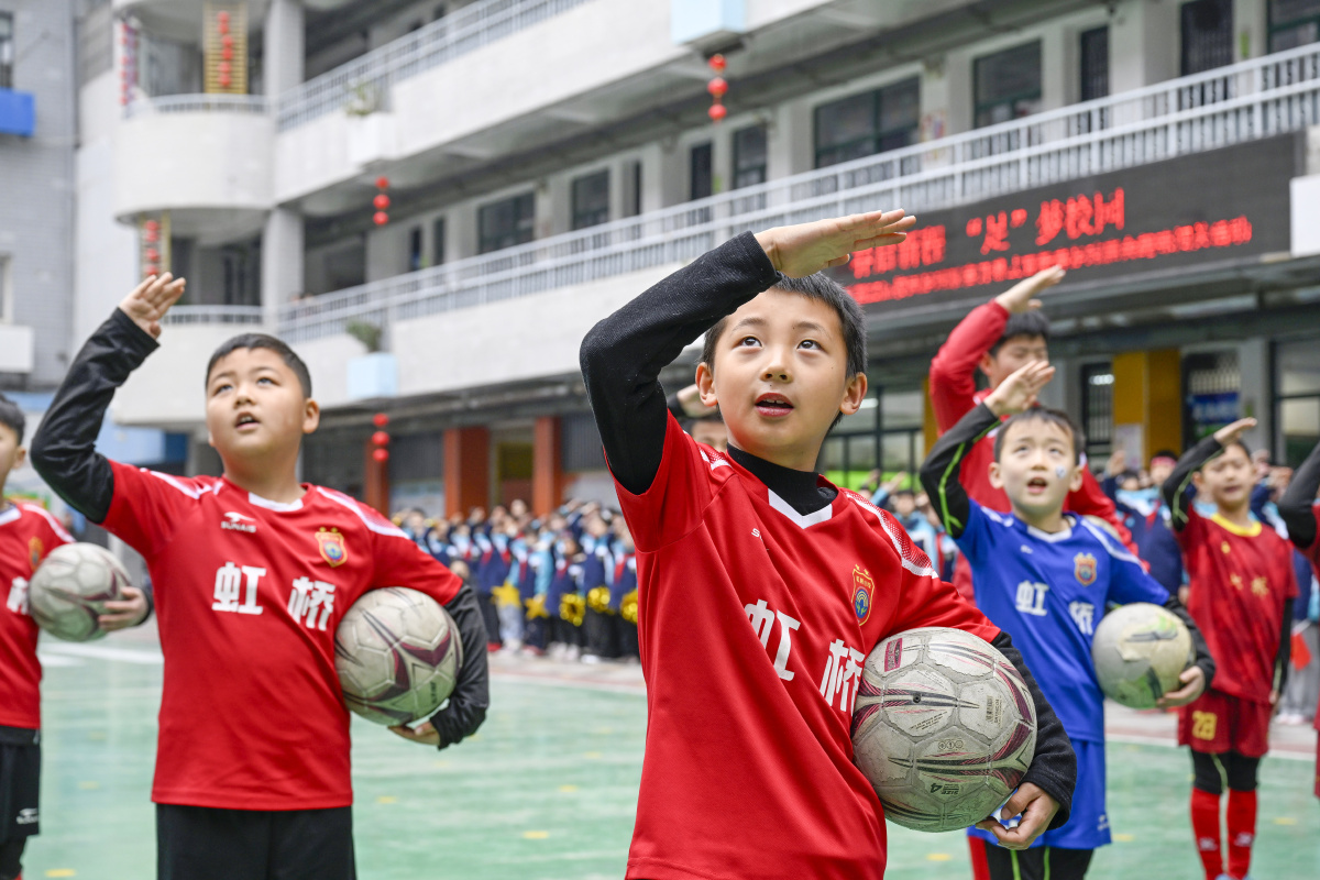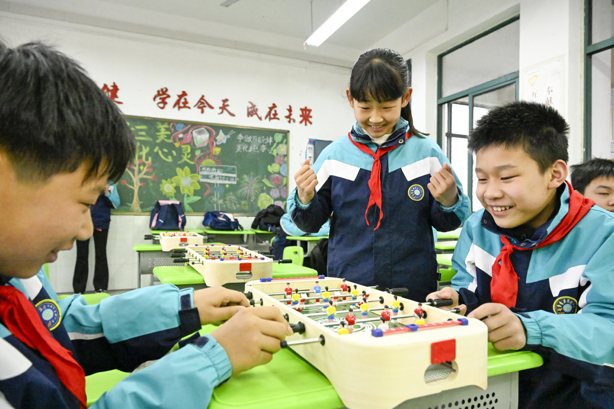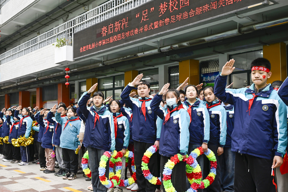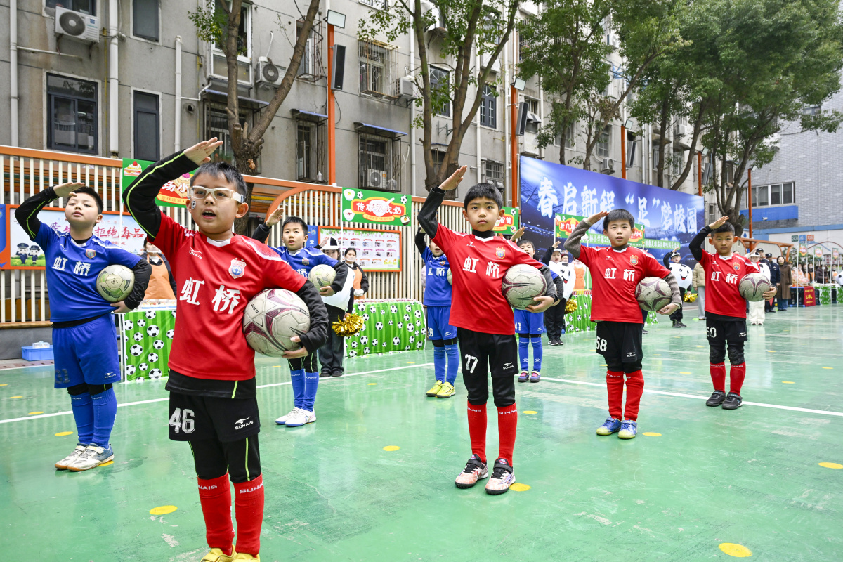 2026年3月5日,在安徽省合肥市庐阳区虹桥小学,小学生正在参加趣味足球运动游戏。当日,合肥市各中小学迎来春季开学季,该校通过开展快乐颠球、桌面足球赛、足尖绕桩、一球击倒、球趣涂鸦等丰富多彩的趣味足球运动游戏,激发学生们对体育运动的热情,树立“健康第一”的理念,感受运动的快乐,书写新学期的崭新篇章。