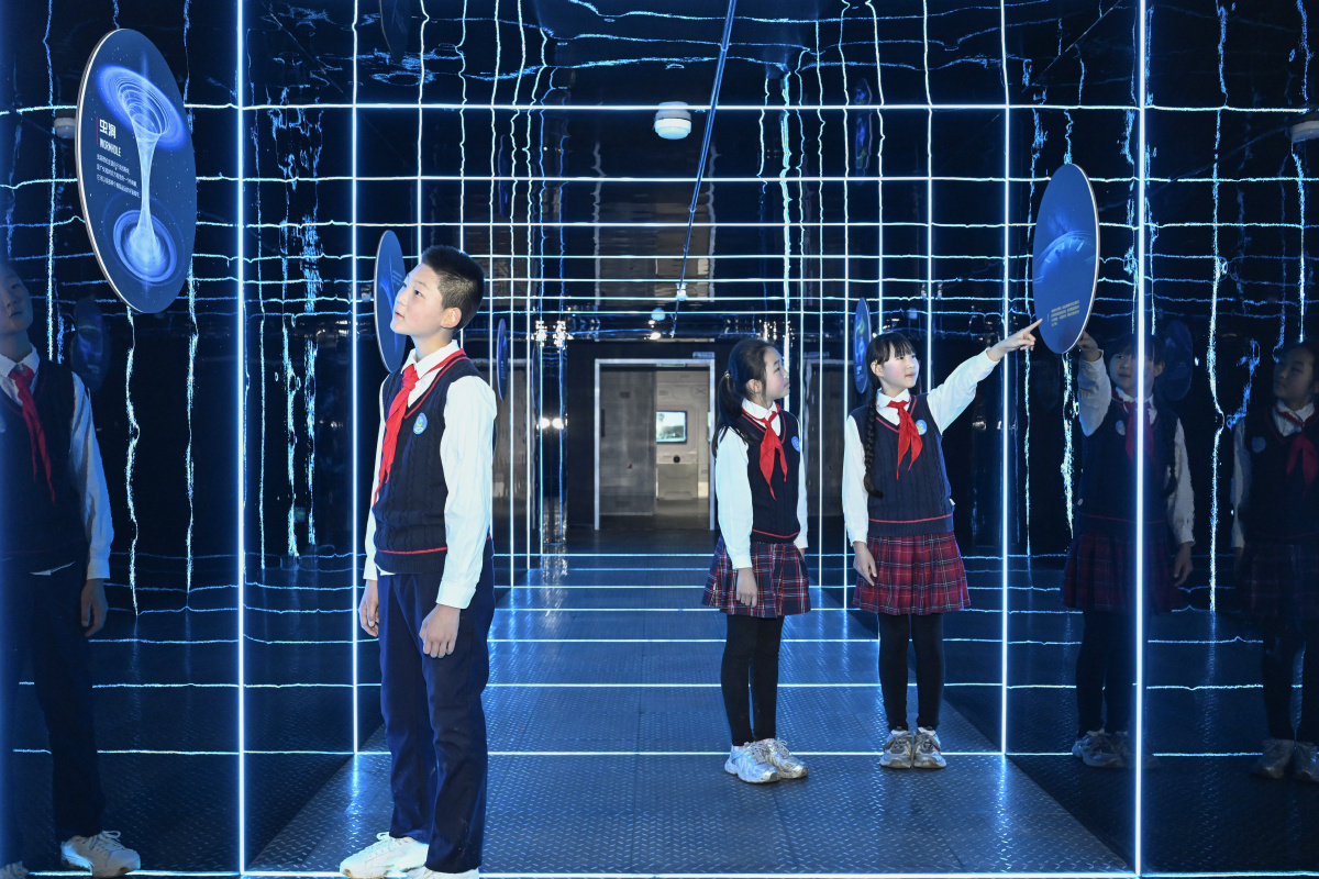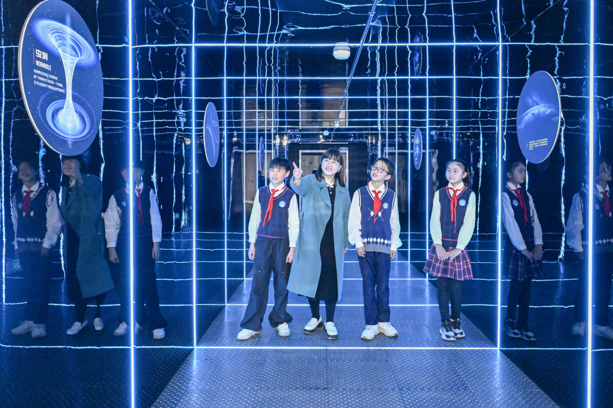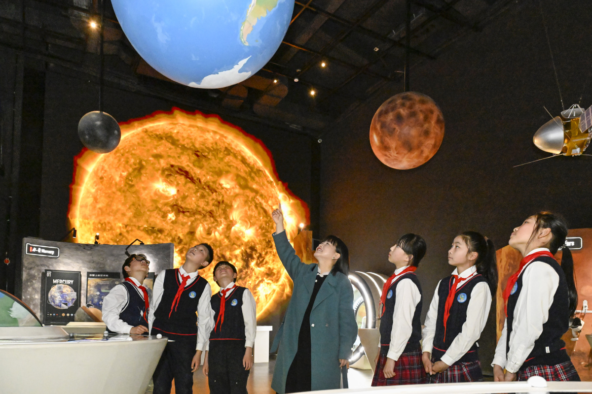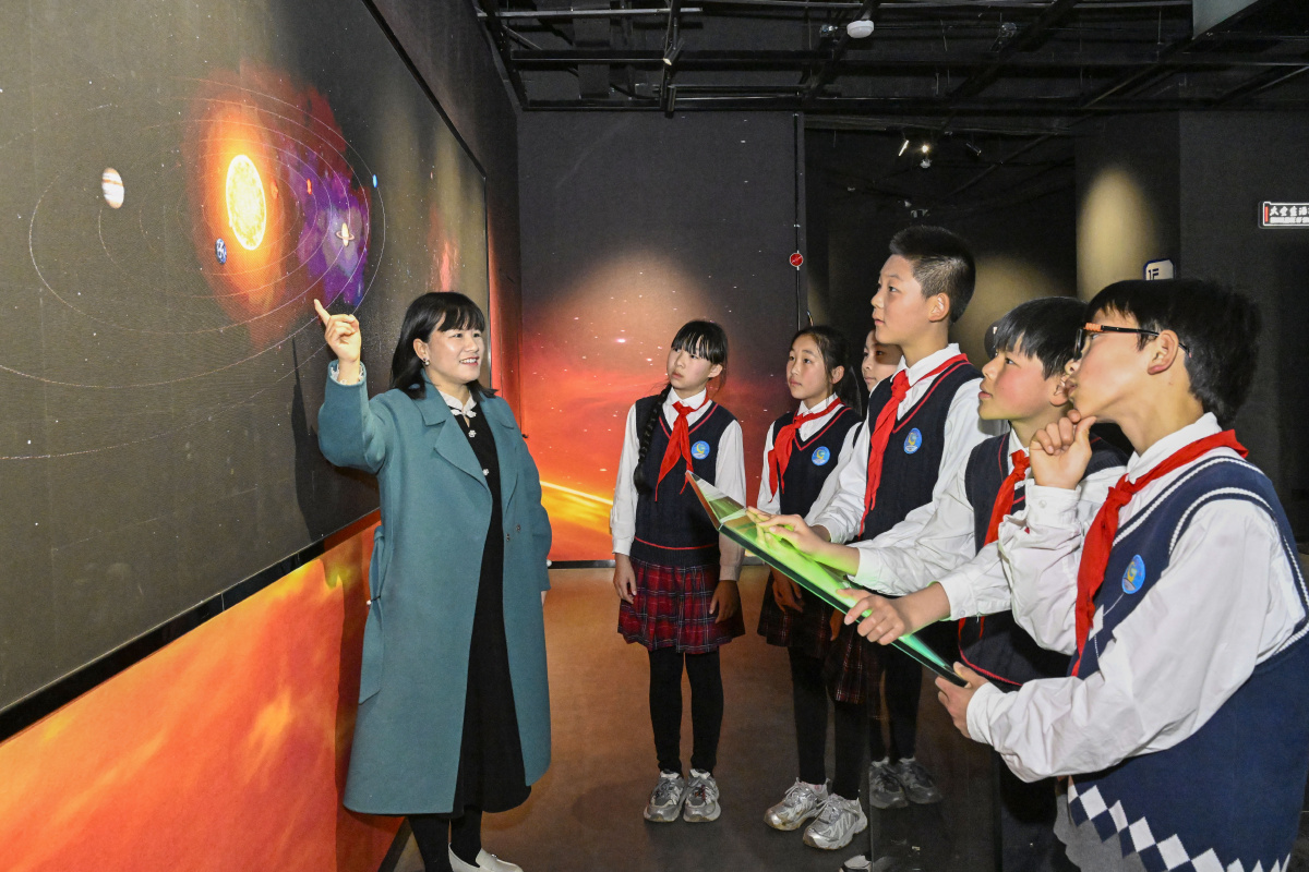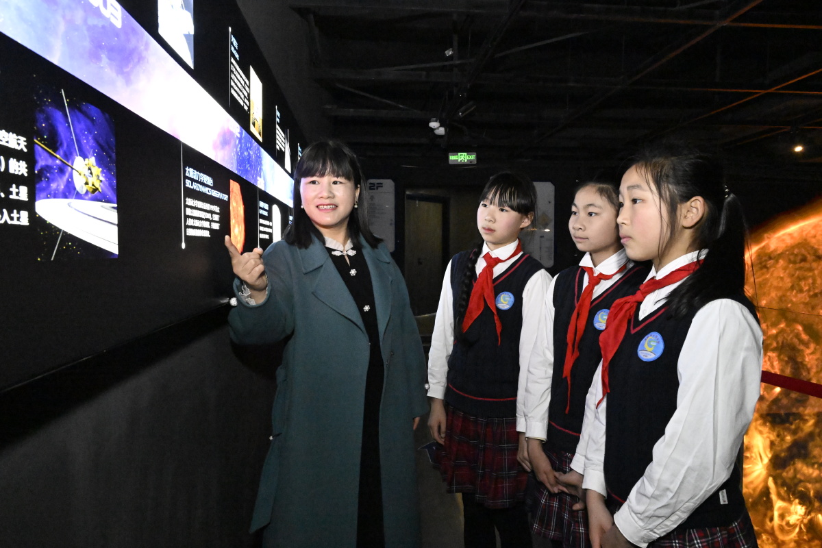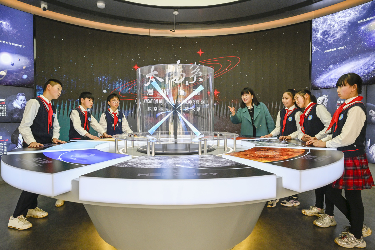 2026年3月20日,在安徽省合肥市庐阳区三十岗乡深空探测科普艺术馆,来自古城小学的小学生正在学习深空科学知识。当日,该校组织开展“科技点亮航天梦”主题活动,学生们通过参观了解航天科技,增长航天知识,激发科学探索热情,种下航天梦想。
