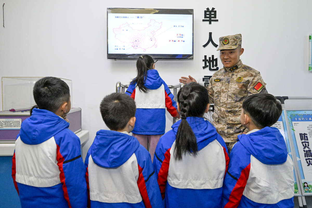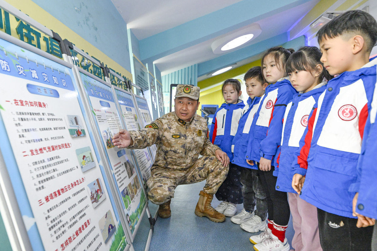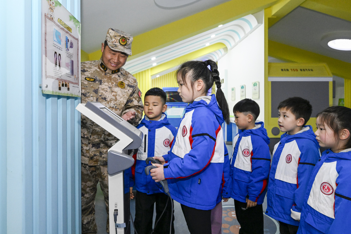 2026年3月23日,在安徽省合肥市庐阳区桃花园社区地震科普馆,来自合肥市长江路幼儿园教育集团京福分园的小朋友们正在体验地震科普设备,学习地震避险知识。当日,该幼儿园联合庐阳区林店街道武装部开展“探索地震奥秘”主题活动,小朋友们通过参观体验,学习地震相关知识以及防震避震知识,提高应急自救自护避险能力。