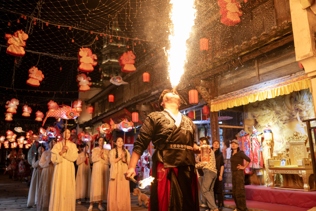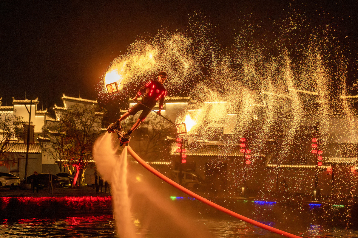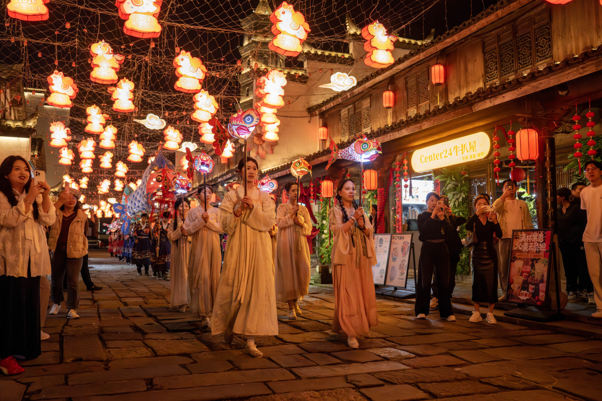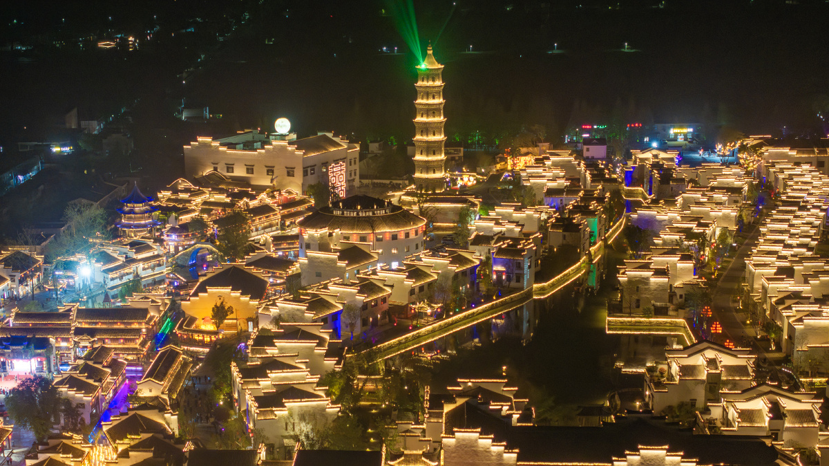 2026年4月10日晚,安徽省铜陵市义安区犁桥水镇游人如织,夜晚的灯光分外璀璨,让游玩的旅客彷佛走入画中,美不胜收。